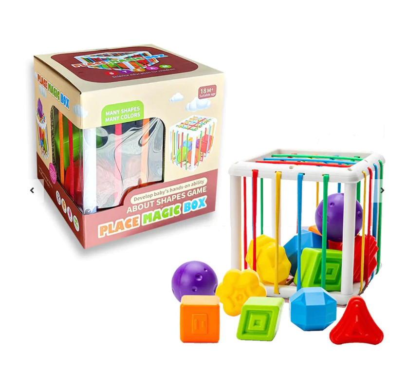 Un juguete educativo diseñado para estimular la curiosidad, motricidad y aprendizaje temprano de tu bebé. Incluye 1 cubo y 6 bloques de formas coloridas, cada uno con función de sonajero.