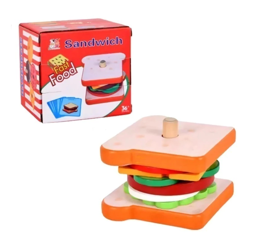 Un juego de simulación perfecto para que los niños imaginen, creen y desarrollen habilidades mientras preparan su propio sándwich o hamburguesa. Fabricado en madera resistente y con colores llamativos,  es ideal para estimular el aprendizaje temprano de forma entretenida.