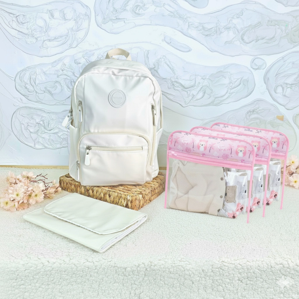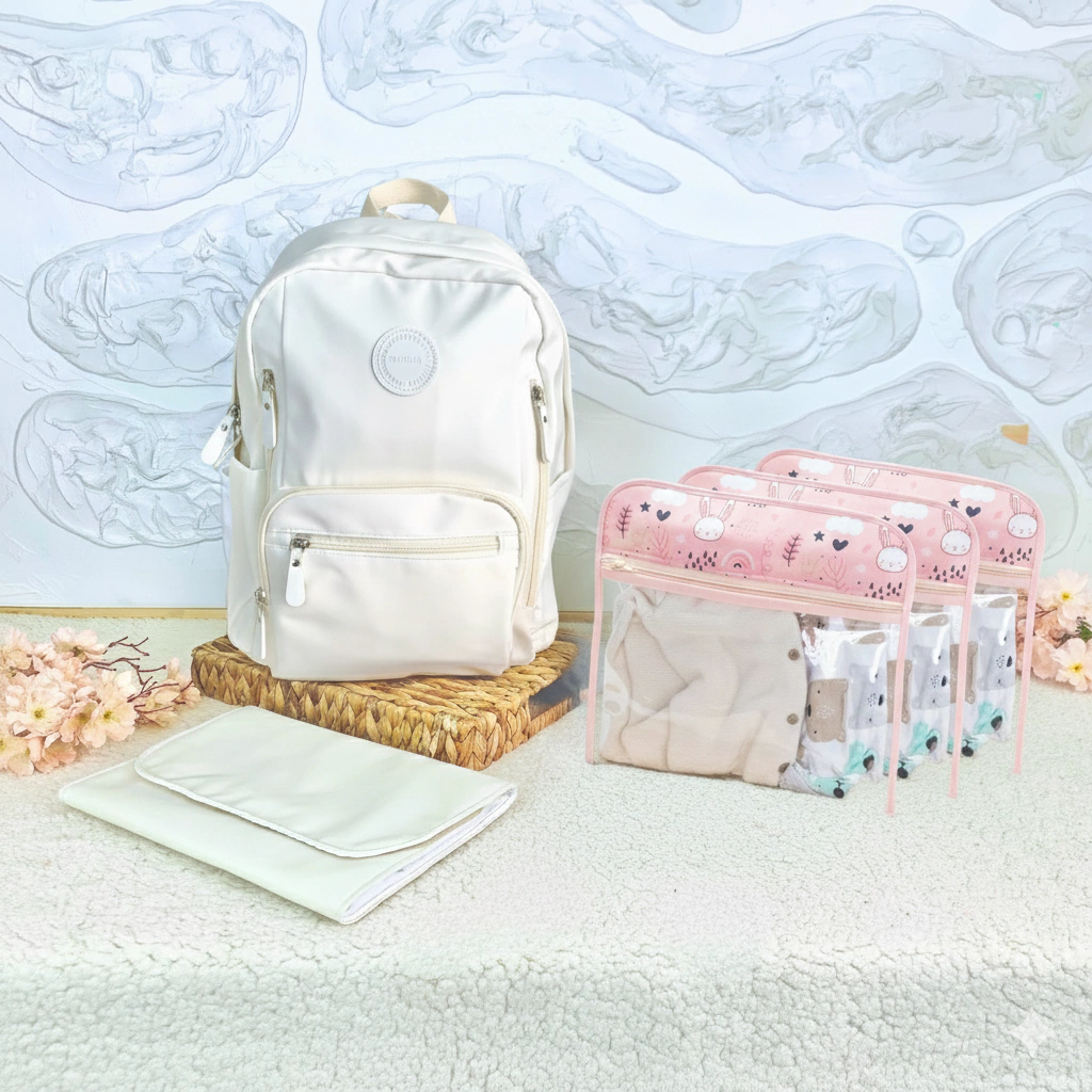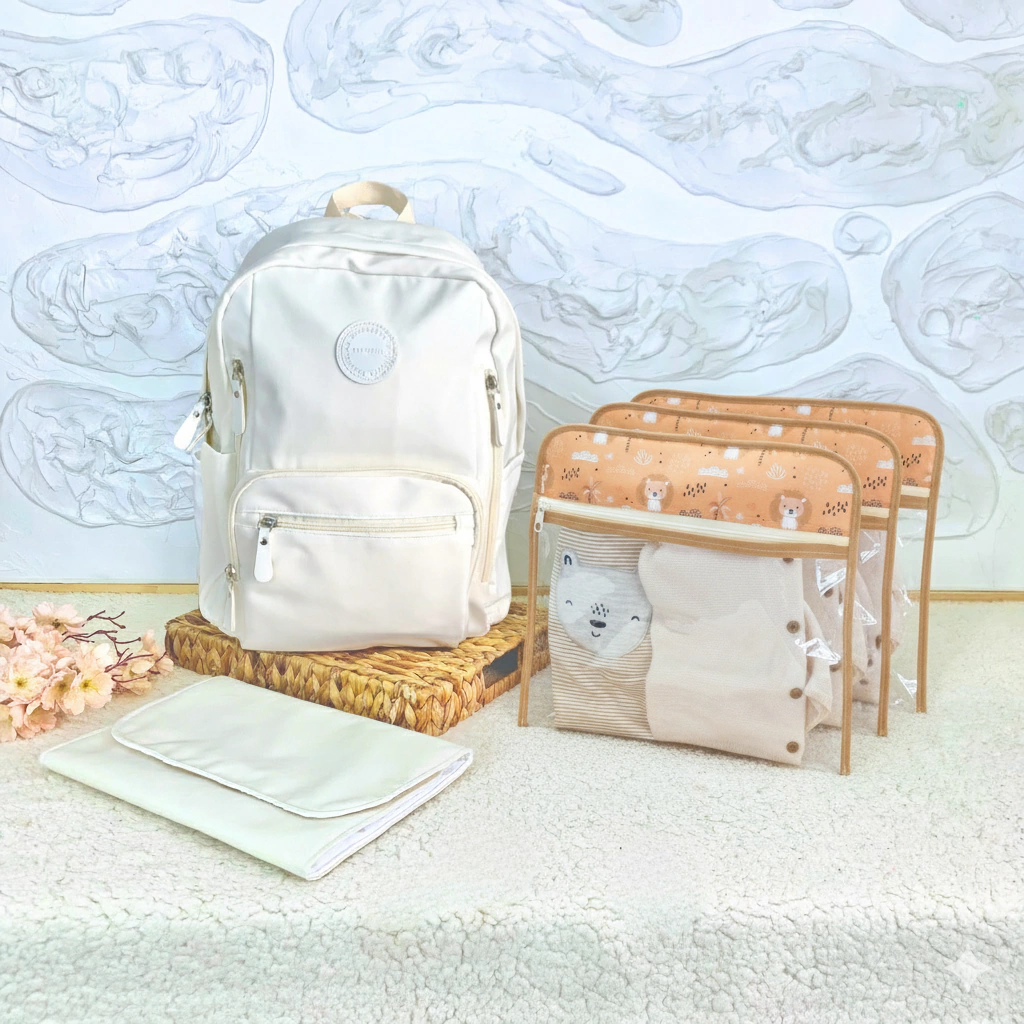Mochila Maternal Blanca con Mudador y Estuches